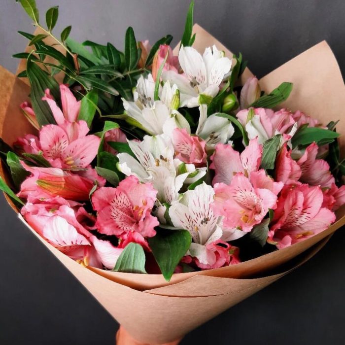 Букет бело-розовых альстромерий