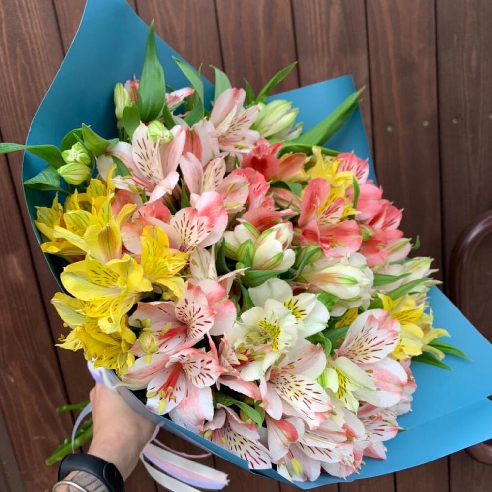 Альстромерия – 17 шт.Упаковка – 2 шт.Лента атласная – 1 шт.