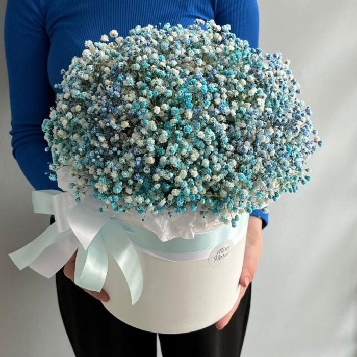 Большая коробка гипсофилы в бирюзово-голубой гамме