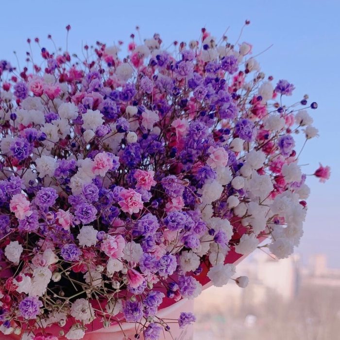 Радужная Гипсофила в розовой коробке