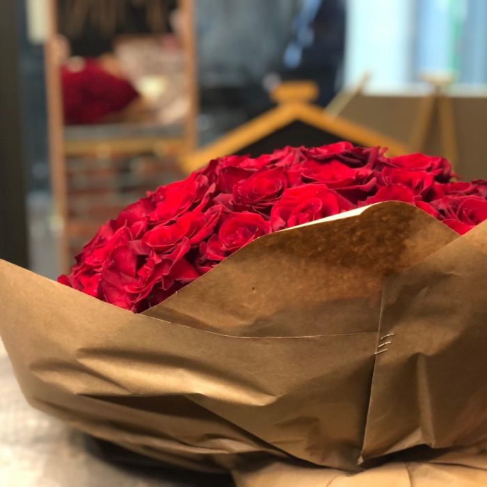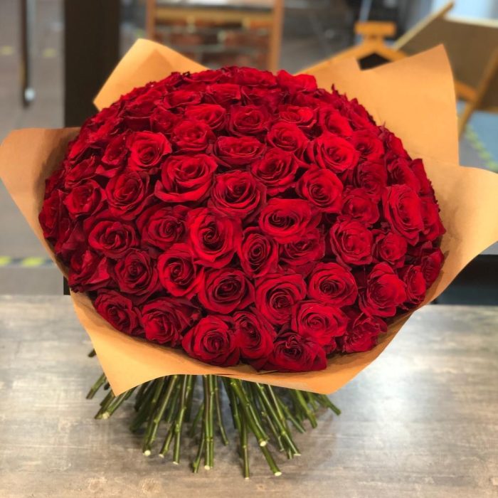 роза explorer 50 см – 133 шт.Крафт упаковка – 1 шт.Лента атласная – 1 шт.
